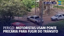 Ponte está com sua estrutura comprometida , com madeiras apodrecidas e quebradas, próximo ao KM 3. Passar por lá, é a única forma de seguir viagem