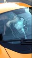 Enervé, ce type casse le pare brise d'une voiture en route !