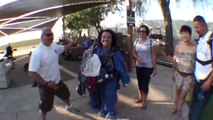 This man as per the small holiday ritual of the town dressed up as Santa and flew down to a grand entry where the crowd was cheering for him. The day turned out to be windier than usual and there were some bumps in the ride but he landed safely and was received with excitement.
