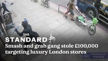 A ram raid gang who stole nearly half a million pounds of goods from London's West End stores have been jailed.<br /><br />Shocking CCTV shows the organised crime group using a variety of stolen cars, including a Jaguar, as well as sledgehammers to smash their way into the designer shops.<br /><br />Credit: SWNS