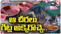 BRS Activists Used Bathukamma Sarees To Protect Food In KTR Meeting At Rajanna Siricilla _ V6 News