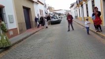Vecinos de Villanueva de los Castillejos (Huelva) celebran una romería en la calle.