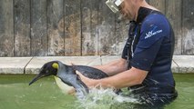 Quand un homme apprend à nager à un manchot qui a peur de l'eau