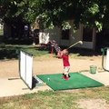 Un enfant met un joli coup au golf