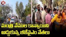 BJYM Activists Block Minister Vemula Prashanth Reddy Convoy | Mancherial | V6 News