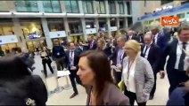 Consiglio Ue, l'uscita dalla sala stampa della Presidente del Parlamento Ue Metsola