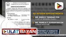Kumpirmasyon ng ad interim appointments ng heneral at ilang senior officers ng AFP, isinumite na ni Pres. Duterte sa CA; Nominasyon ng isang Commissioner ng COA, isinumite na rin