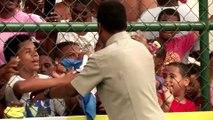 Brazilian team wear masks in protest at having to play
