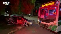 Sem CNH, motorista envolvido em acidente com ônibus é detido pela Polícia Militar