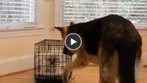 Ein Hund hilft seinem Gefährten beim Ausbruch aus dem Käfig. Zwei total süße Schlingel!