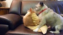 crazy - Hund rammelt heimlich ein Kissen und räumt hinterher wieder auf