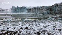 Moment massive glacier collapses in Iceland lagoon, sending tourists fleeing in panic