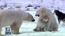Un Husky se perd sur la glace et se retrouve entre 2 ours polaires. La suite est hallucinante !
