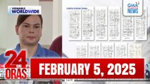 Narito ang mga maiinit na balita sa 24 Oras Express ngayong Biyernes, February 4, 2022:<br /><br />- Paglilinaw ng palasyo, natapos na ang quarantine ni Pres. Duterte kahapon<br /><br />- Paalala ng DOH, panatilihin ang pagsusuot ng mask at 'wag dadalhin sa matataong lugar ang mga bata<br /><br />- Timbangan ng bayan, itatayo na rin sa mga tiangge at supermarkets<br /><br />- Sim Card Registration Bill, pirma na lang ni Pangulong Duterte ang hinihintay bago maging batas<br /><br />- COVID-19 active cases, bumaba pa sa 151,389 matapos makapagtala ng 10,474 recoveries<br /><br />- Truck ng basura, tumagilid matapos bumangga sa pader<br /><br />- Kawalan ng pananagutan ng gobyerno, isa sa mga inirereklamo ng mga magulang na tutol sa bakunahan ng mga bata<br /><br />- Panibagong Nat'l Vaccination Drive ngayong Pebrero, pinag-aaralan na ng NTF against COVID-19<br /><br />- Aktor na si Diether Ocampo,sugatan matapos sumalpok ang minamanehong sasakyan sa dump truck<br /><br />- Ang nagpapatuloy na aktibidad ng mga Senatorial aspirants para sa #Eleksyon2022<br /><br />- Excel Care Diagnostic & Wellness Center Inc., inaming sa kanila ang mga medical waste na natagpuan sa baybayin ng Catanduanes<br /><br />- Kaso ng Diarrhea sa Caraga, Davao Oriental, umakyat na sa 426; 2 nasawi<br /><br />- Senate resolution na inirerekomendang kasuhan si DOE Sec. Cusi at 11 pang opisyal, inihain sa Ombudsman<br /><br />- Pangulong Duterte, nagpahayag ng kaniyang tiwala kay DOE Sec. Alfonsi Cusi<br /><br />For Kapuso abroad, subscribe to GMA Pinoy TV (http://www.gmapinoytv.com/) for GMA programs, including the full version of 24 Oras.<br /><br />24 Oras is GMA Network's flagship newscast, anchored by GMA News pillars Mike Enriquez, Mel Tiangco, and Vicky Morales, featuring top news stories from the Philippines and the hottest showbiz news on Chika Minute hosted by Iya Villania. Visit GMA News Online (http://www.gmanews.tv/24Oras) for more.