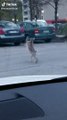 Two rabbits fighting in a street
