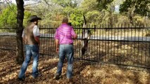 Occurred on December 6, 2021 / Ashland, Kentucky, USA<br /><br />Info from Licensor: We were going to work, pouring the concrete driveway at this house. When I pulled in a bunch of deer took off and the one tried to jump through the fence. The rails are only 4 inches wide, how it got between them is crazy. But we got it out.