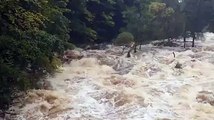 Dramatic video shows raging river following heavy rainfall