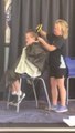 Kaila shaving off Ace's hair at their fundraiser
