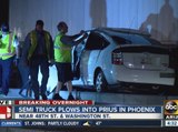Semi and car collide on light rail tracks