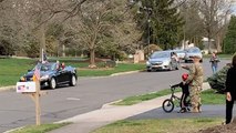 A military father gave his young family the surprise of their lives when they opened the trunk of their vehicle to see him lying in their having returned from deployment early. Emmy, 8, Lincoln, 6, and Porter, 3, had not seen their father Ron Johnson, 34, for more than a year while he served in Iraq. As the trio discovered their father – who they had only been able to communicate with over video calls – they immediately jumped into father’s arms in delight as they realized the surprise their parents had planned on October 19. Ron, a sergeant with the Indiana Army National Guard, had been deployed in Iraq for the past 10 months, but due to other military commitments, the father-of-three was away from home in Osceola, Indiana, for 367 days. When he received news that he could finally head home, he began working with his wife, Becky, 36, on the big surprise. The moment took place at Becky’s mother’s home, with Becky pulling into the driveway and walking inside to collect the kids. With the camera rolling, Becky then filmed Emmy, Lincoln and Porter’s reactions as they headed to the back of the family van for the big surprise.