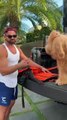 This is the hilarious moment an adorable dog desperately tries to conceal his guilt while hiding in the shower after breaking a decorative bird when his owner was out. Goldendoodle pup Beaux usually greets owner Tiffany Robertson at her front door when she comes home but on October 18 he was nowhere to be seen. As Tiffany, from Belle Chasse, Louisiana, walked through her house she spotted a broken decorative bird on the floor, with its tail missing, and went looking for the culprit. Her 10-month-old pooch was hiding in the shower, so she decided to film the moment she confronted him to show family and friends as she knew it would be funny. When Tiffany asks ‘What happened to mama’s bird, do you know anything about this?’ Beaux innocently looks away, peering out side eye to see if Tiffany is still looking at him. Beaux then gets up and moves to the other end of the shower behind a curtain to hide once more, until Tiffany pulls the curtain back and he realizes he’s definitely been busted.