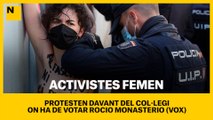 Activistes de Femen protesten davant del col·legi San Agustín, on ha de votar Rocío Monasterio (VOX).