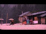 The process of cooking pork meat using a hollow cross-section of forest bamboo in north-east India's Arunachal Pradesh.<br /><br />They cut out the choicest pieces of cooking and place them within a hollow bamboo, sealing off the bamboo from the other end. The hollowed-out bamboo sticks are then placed next to the fire, for slow cooking, with an earthy flavor and fragrance being introduced and retained in the meat.<br /><br />This footage is part of the professionally-shot broadcast stock footage archive of Wilderness Films India Ltd., the largest collection of HD imagery from South Asia. The Wilderness Films India collection comprises of tens of thousands of hours of high quality broadcast imagery, mostly shot on HDCAM 1080i High Definition, HDV and XDCAM. Write to us for licensing this footage on a broadcast format, for use in your production! We are happy to be commissioned to film for you or else provide you with broadcast crewing and production solutions across South Asia. We pride ourselves in bringing the best of India and South Asia to the world... Reach us at rupindang [at] gmail [dot] com and admin@wildfilmsindia.com.<br />