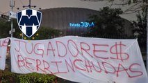 Afición de Rayados se lanza en contra del equipo y Grupo FEMSA con mantas en el BBVA: ''Jugadores berrinchudos''
