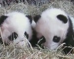 Panda kembar Fu Feng dan Fu Ban main salji di Zoo Vienna
