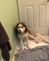 Stubborn husky not too thrilled for bath time