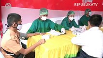 Vaksinator bersiap untuk melakukan vaksinasi saat vaksinasi Covid-19 massal di Poltekkes Kemenkes Bandung, Jalan Pajajaran, Kota Bandung.