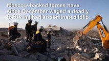 Amateur video footage shows a child being rescued from the rubble of a house in Hazarin, Idlib after the area was targeted by air strikes.