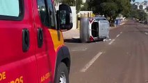 Impressionante: veja o momento do capotamento no Centro de Cascavel