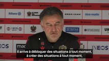 L'OGC Nice a battu sur le fil le Paris Saint-Germain à l'Allianz Riviera (1-0) ce samedi dans le choc au sommet de la 27e journée de Ligue 1. En conférence de presse d'après-match, l'entraîneur du club azuréen Christophe Galtier est revenu sur la prestation de son équipe et sur l'absence préjudiciable de Kylian Mbappé côté parisien.