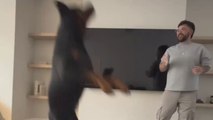 Dog loses all chill and smashes table while jumping for bubbles