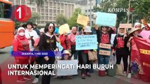 JAKARTA, KOMPAS.TV - Sejumlah aliansi buruh yang tergabung dalam Konfederasi Serikat Pekerja Indonesia menggelar unjuk rasa dalam rangka Hari Perempuan Internasional. <br /> <br />Dalam aksinya, mereka menuntut kesetaraan gender berkelanjutan di tempat kerja. <br /> <br />Aksi digelar di depan Gedung Dewan Perwakilan Rakyat Indonesia, DPR RI, Selasa (08/03) siang. <br /> <br />Baca Juga Tolak Aturan Baru Dana JHT, Buruh di Karawang Unjuk Rasa di Depan Kantor BPJS Ketenagakerjaan di https://www.kompas.tv/article/266637/tolak-aturan-baru-dana-jht-buruh-di-karawang-unjuk-rasa-di-depan-kantor-bpjs-ketenagakerjaan <br /> <br />Para pendemo menyuarakan perlindungan hak-hak perempuan di tempat kerja, khususnya perlindungan maternitas dan cuti haid. <br /> <br />Selain itu, mereka juga menuntut adanya perlindungan perempuan dari diskriminasi, kekerasan, dan pelecehan yang terjadi di tempat kerja. <br /> <br />Dalam tuntutannya, para pendemo juga menyuarakan penolakan undang-undang cipta kerja yang dianggap mendegradasi hak-hak pekerja. <br /> <br />Artikel ini bisa dilihat di : https://www.kompas.tv/article/268463/hari-perempuan-internasional-buruh-perempuan-demo-di-dpr-tuntut-perlindungan-hak-perempuan