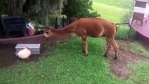 The homeowner of this house was in for a rude awakening when they got home! A smart goat named Finny, who knew how to open a door, thought it would be funny to let the chickens, hens, and alpacas get in the house. Once in, they basically took over the entire house and destroyed plates, ate all the plants, and pooped everywhere!