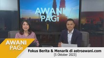 Awani Pagi membawakan kemaskini terkini mengenai berita dalam dan luar negara yang dilaporkan di www.astroawani.com bersama Hakim Rahman dan Geegee Ahmad.