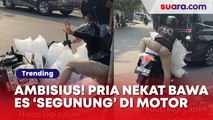 Ambisius! Pria Nekat Naik Motor Bawa Es ‘Segunung’, Penampakannya Bikin Ngeri