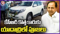 Special Pooja Performed To CM KCR New Land Cruiser Car At Yadadri _ V6 News