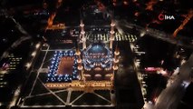 Selimiye Camisi minarelerine "mahya" asıldı
