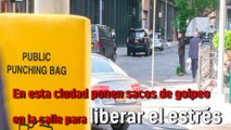 En esta ciudad ponen sacos de golpeo en la calle para liberar el estrés