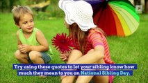10 Quotes to Celebrate <br />National Sibling Day.<br />Try using these quotes to let your <br />sibling know how much they mean to <br />you on National Sibling Day.<br />When sisters stand shoulder to shoulder, who stands a chance against us?, Pam Brown.<br />I don’t believe an accident of birth makes people sisters or brothers... Sisterhood and brotherhood is a condition people have to work at, Maya Angelou.<br />All blood does is make <br />you related. But loyalty? <br />It's loyalty that makes <br />you family, Chris Diaz.<br />A sister is both your mirror <br />— and your opposite, Elizabeth Fishel.<br />Siblings are the people we practice on, the people who teach us about fairness and cooperation and kindness and caring – quite often the hard way, Pamela Dugdale.<br />There’s no other love like the love for a brother. There’s no other love like the love from a brother, Terri Guillemets.<br />A sister smiles when one tells stories — for she knows where the decoration has been added, Chris Montaigne.<br />[A] sister is our first friend and second mother, Sunny Gupta.<br />A sister is a little bit of childhood that can never be lost, Marion C. Garretty.<br />If you don't understand how a woman could both love her sister dearly and want to wring her neck at the same time, then you were probably an only child, Linda Sunshine