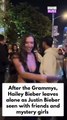Unseen footage shows Justin Bieber leaving a Grammys after-party with friends and mystery girls as Hailey Bieber exits solo