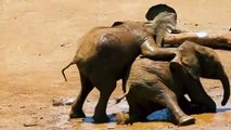 Baby Elephants Playing In The Mud فيلة صغيرة تلعب