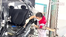 This man was attempting repairs on his car when a wire which he thought he had fully disconnected, pushed the car into neutral and it started rolling backward. Thankfully, the man could think quickly on his feet and managed to stop the truck before it squished him to the ground.