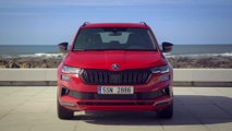 The new KAROQ is characterised by ŠKODA’s updated emotive design language featuring crystalline elements. New design details include the wider, now hexagonal ŠKODA grille, restyled front and rear aprons, as well as slimmer and sharper LED headlights and tail lights. The daytime running lights are now split in two, and for the first time, the KAROQ can be equipped with full-LED Matrix headlights as an option. Aerodynamics have been improved by more than 9%, meaning that the SUV now boasts a drag coefficient (cd) of 0.30 and correspondingly lower CO2 emissions. This has been made possible, for example, by new alloy wheels with Aero inserts, a longer rear spoiler, side finlets on the rear window and the now covered underbody. An increased range of state-of-the-art assistance and safety systems ensures even higher levels of active and passive safety.