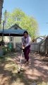Person Does DIY Cleaning Of Wooden Deck Using Rotary Machine