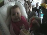 Première compote d'Elsa donnée par papa (18/02/11)