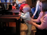 Carter standing at Quinn's coffee table!